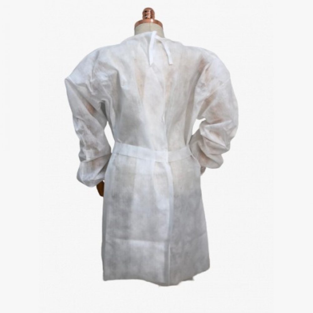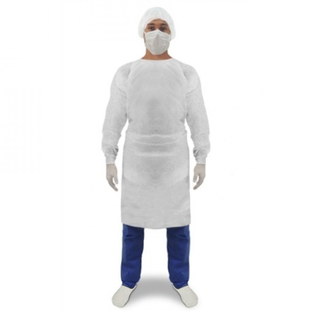 AVENTAL DESCARTÁVEL Material: TNT Com fechamento em tiras (pescoço e cintura) Manga Longa, com elástico nos punhos; Uso único, individual e descartável; Gramatura: 20 gr e 30 gr Cor: Branca; Tamanho: Único 1,40 X1,20 cm