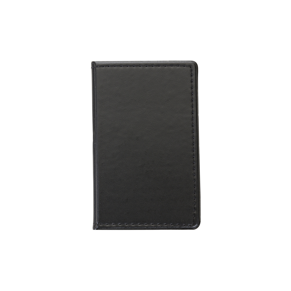 Bloco de anotações personalizado couro sintético com post-it, frente e verso liso. Possui cinco blocos coloridos auto-colantes com aproximadamente 25 folhas e bloco amarelo com aproximadamente 30 folhas.