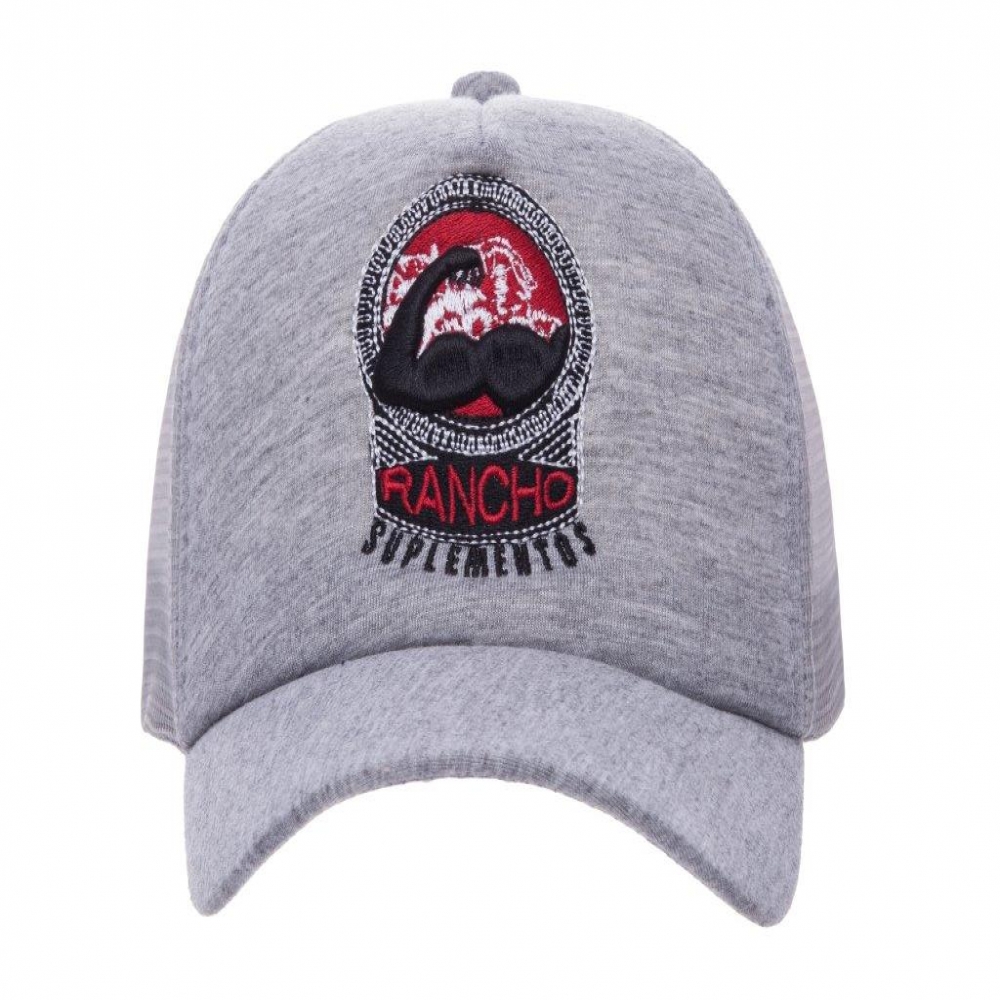 Boné Trucker, tecido malha, frente bordada, tela, regulador de pino plástico.