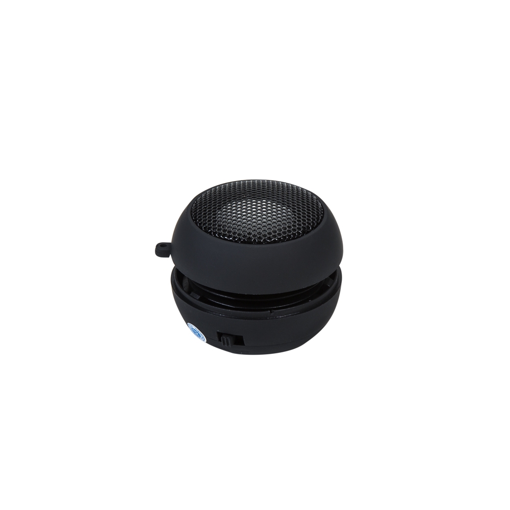 Caixinha de som personalizada formato hambúrguer. Material plástico, possui tela de proteção preta superior com detalhe vazado do falante, botão On/Off; entrada MicroUSB; luz led indicativa de funcionamento e suporte lateral para chaveiro. Acima da entrada MicroUSB há um desenho indicativo de cadeado aberto e fechado, basta rotacionar a base conforme indicado no desenho para abrir a caixinha e visualizar o design sanfona; botão On/Off possui um desenho indicativo com 2 opções de volume, ao colocar o botão totalmente para a direita ele alcançará a potência mais alta; cabo P2 localizada na parte inferior da caixinha. Pode ser utilizada como caixinha para computadores, notebooks, celulares, tablets, entre outros. Falante 2W; Frequência 280 Hz-16 Khz; Ruído >80 db; Distorção <1.0%; Voltagem 5V ╧ 0.05V. Acompanha cabo USB.