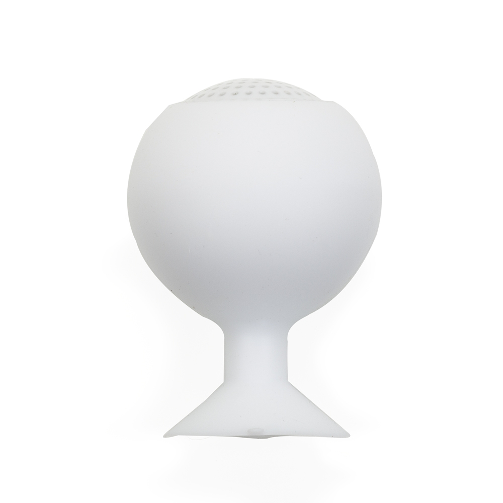 Caixinha de som personalizada amplificadora com ventosa. Material emborrachado colorido, possui tela superior branca para proteção do falante, formato circular com ventosa inferior. Possui entrada P2 para conexão nos eletrônicos e também recarga. Falante 2W, acompanha cabo P2/aúdio e cabo P2 de saída USB.