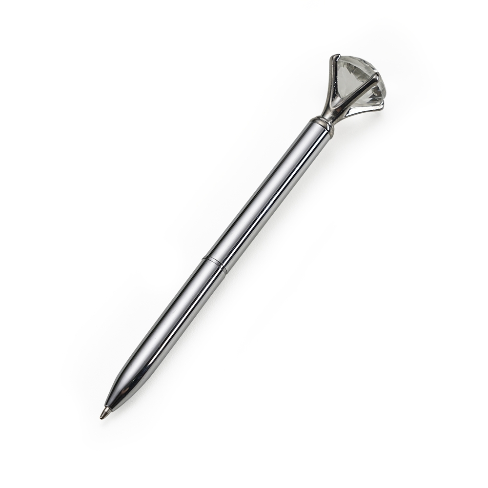 Caneta metálica diamante, acionamento por rotação e carga esferográfica na cor azul. Material: Metal Comprimento: 13,9 cm Diamante - Largura: 2 cm