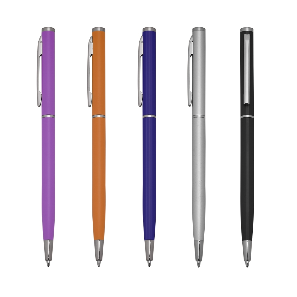 Caneta metálica com carga esferográfica azul 1.0mm e acionamento por rotação. Comprimento : 13,1 cm