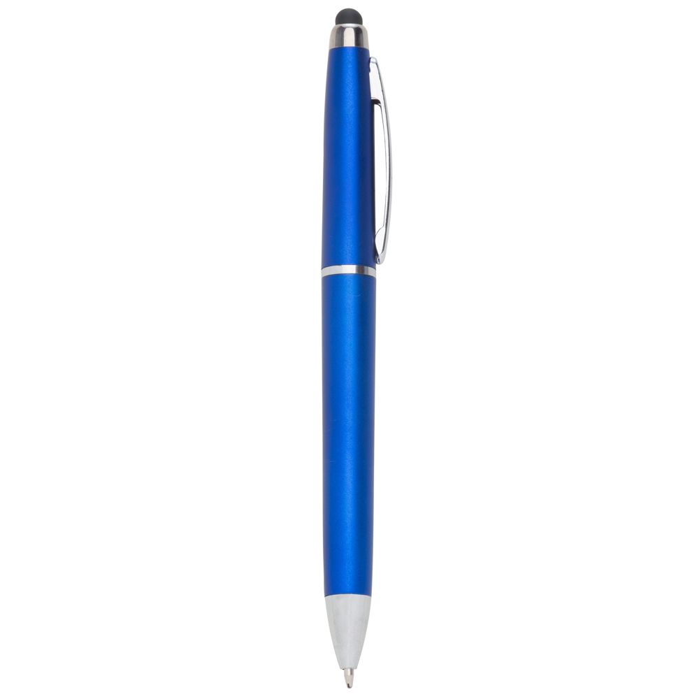 Caneta plástica personalizada colorida com borracha touch. Clip plástico prata com borracha touch superior, detalhe superior e anel central na cor prata. Aciona por giro.
