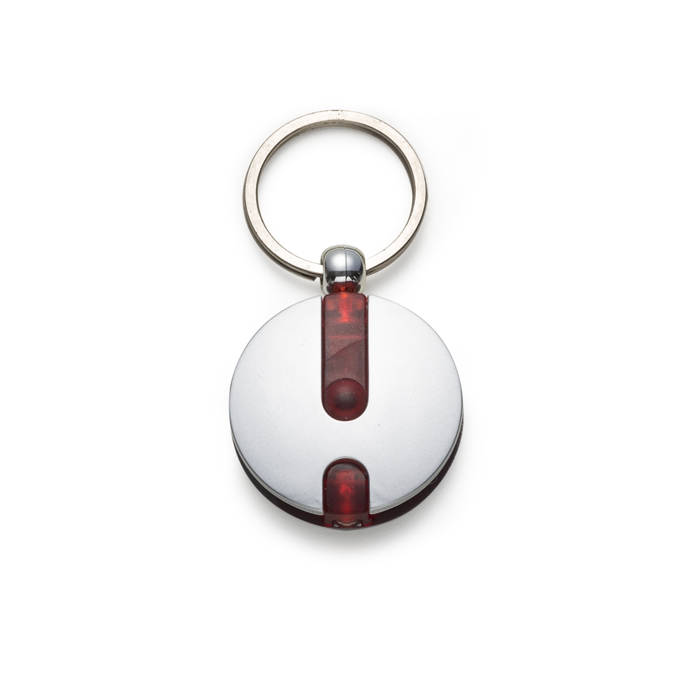 Chaveiro lanterna plástico personalizado, inteiro prata com detalhes coloridos. Formato redondo, possui verso liso e frente com botão para acender a lanterna. Acompanha 3 baterias AG3, para trocar bastar puxar com cuidado “tampa” inferior de encaixe.