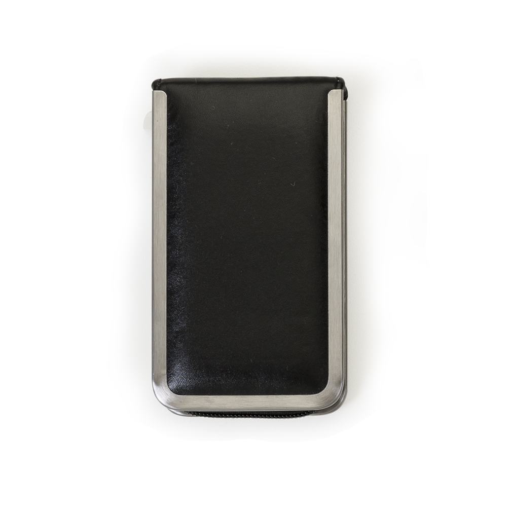Kit manicure personalizado 6 peças em estojo de couro sintético com laterais metálicas. Parte interna revestida de veludo com suporte couro para os itens, possui: lixa, pinça, empurrador de cutícula, cortador de cutícula, tesoura e cortador de unha todos metálicos/inox.