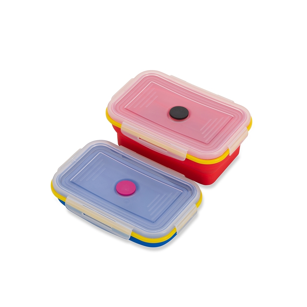 Lancheira dobrável termoplástica pequena livre de BPA, contém tampa plástica com quatro lacres e borracha central removível para saída de vapor. Pode ser levada ao microondas, geladeira e máquina de louça. Para evitar a danificação do produto, é recomendado não utilizar facas pois poderão cortar o material. Obs.: Proibido levar ao fogo.