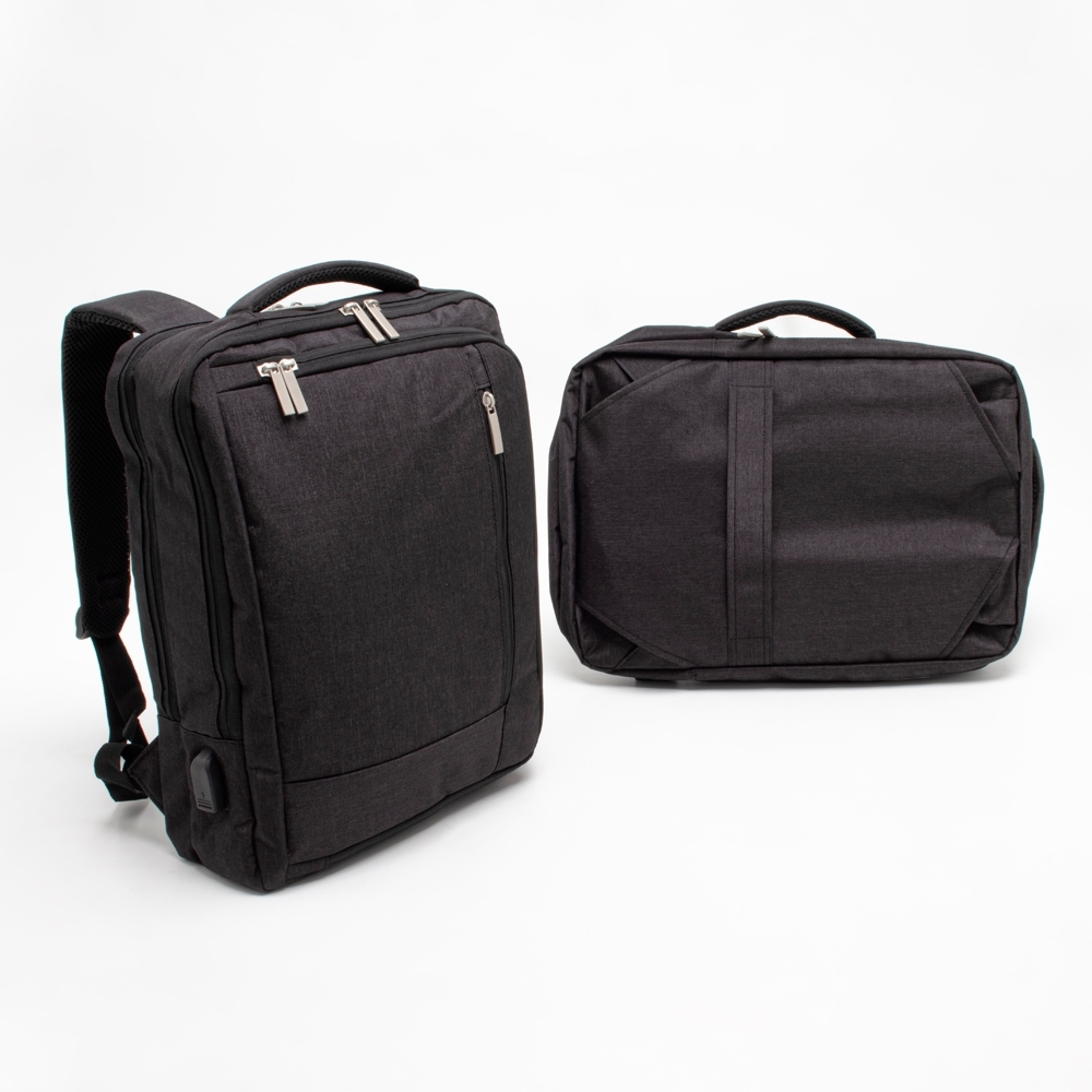 Mochila de poliéster impermeável 19 litros com 4 compartimentos personalizada, sendo o principal com bolso para notebook 15,6 e compartimento com bolso sanfonado, ideal para documentos. Com divisórias internas para acessórios, a mochila possui suporte externo USB, alça para engate em malas de viagem e duas alças de mãos, sendo uma delas para o transporte da mochila no formato pasta.