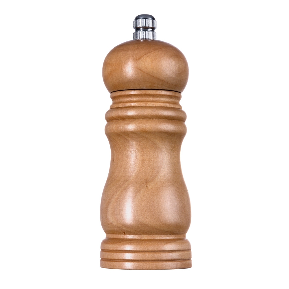Moedor de pimenta em madeira com detalhes em relevo, possui detalhe alumínio prata superior(basta desroquear para colocar a pimenta dentro).