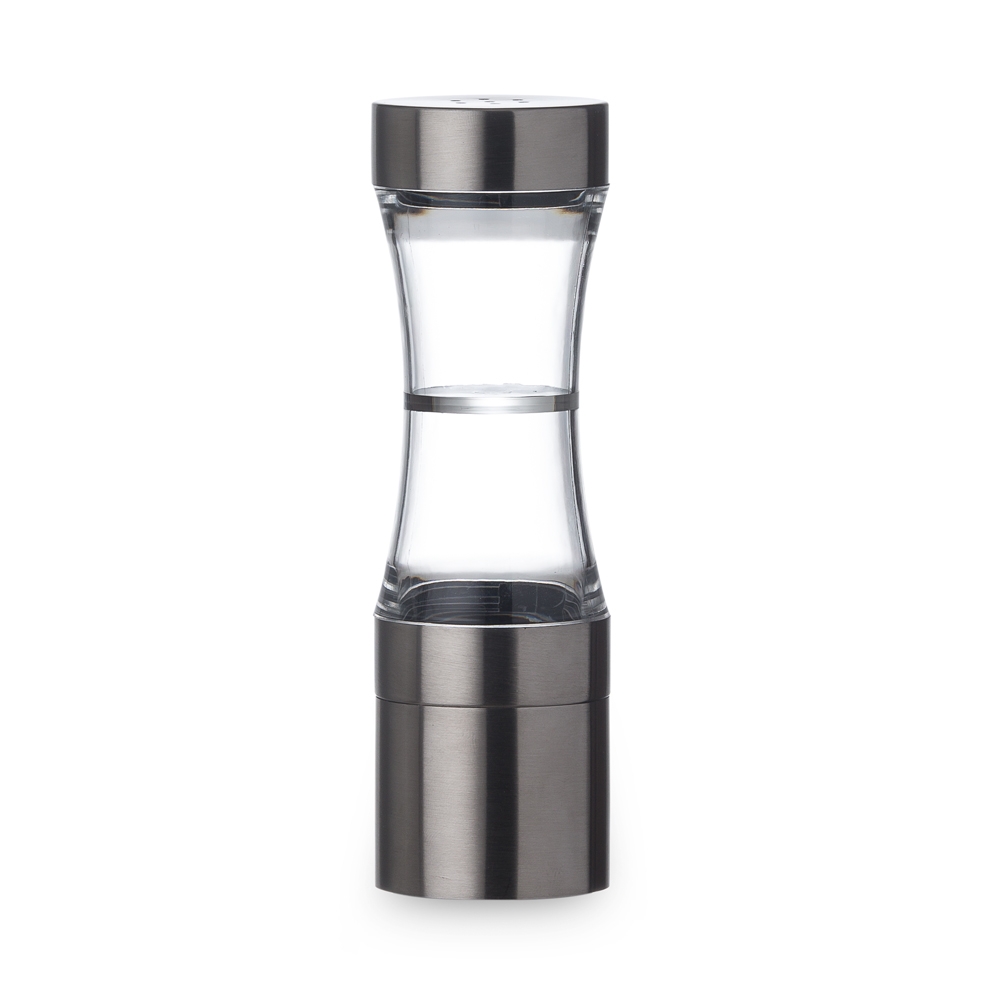 Moedor e porta pimenta personalizado de metal, tubo em acrílico. Para utilizar basta desrosquear os compartimentos em metal.