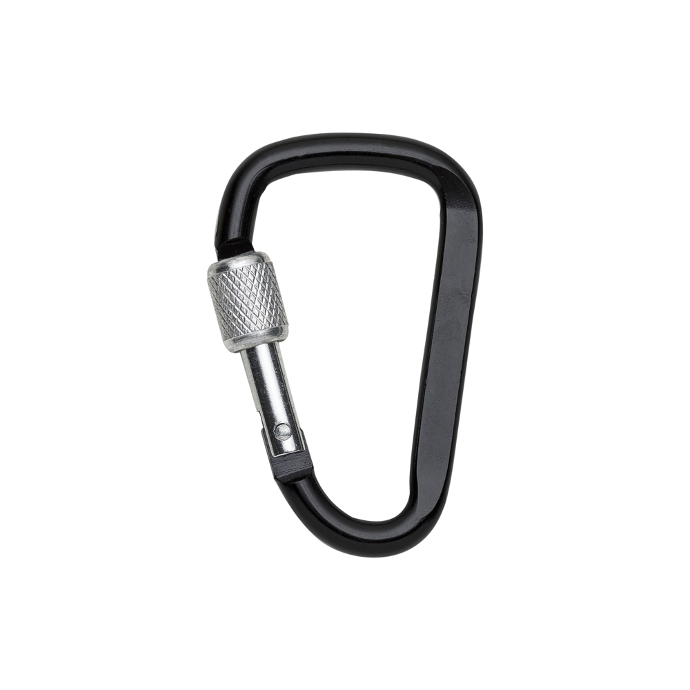 Mosquetão de alumínio personalizado com trava em relevo(basta rotacionar compartimento), possui lateral reta ideal para personalização.