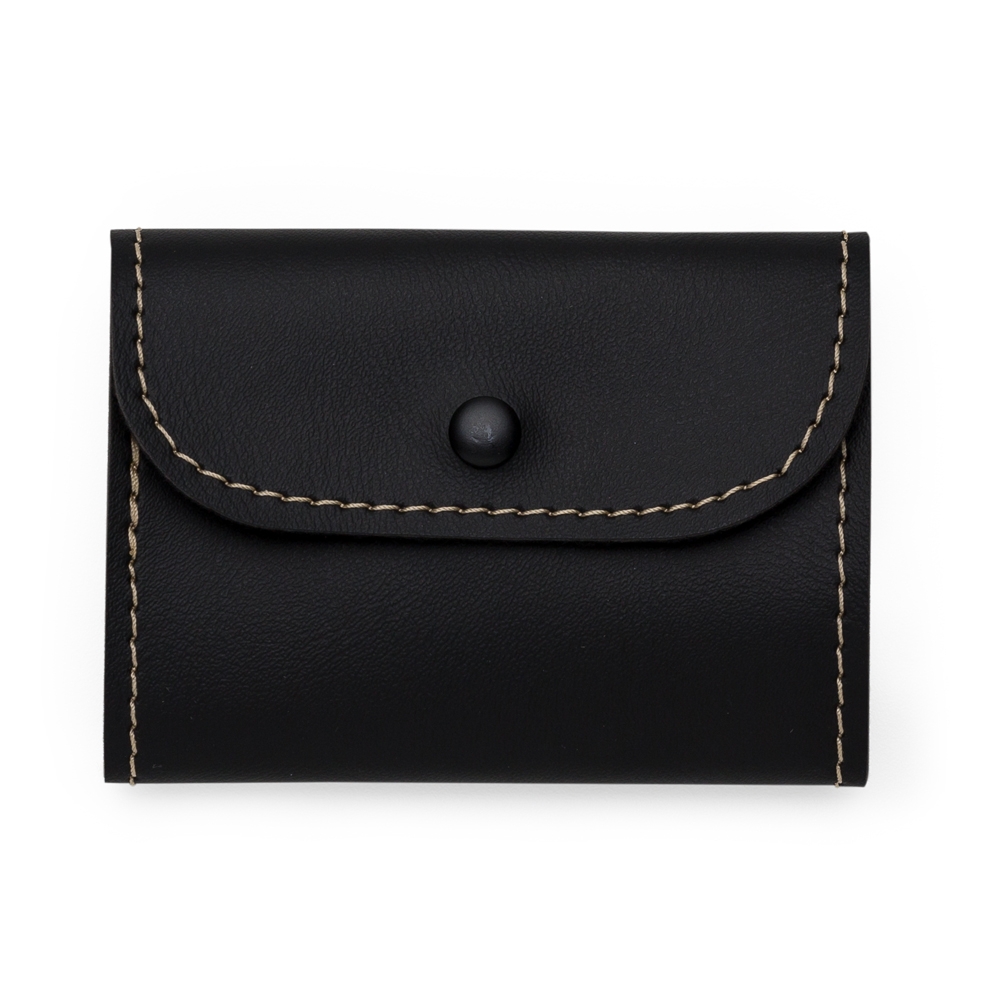 Bloco de anotação personalizado Bidins em couro sintético com botão de pressão. Possui aproximadamente 80 folhas brancas sem pauta.