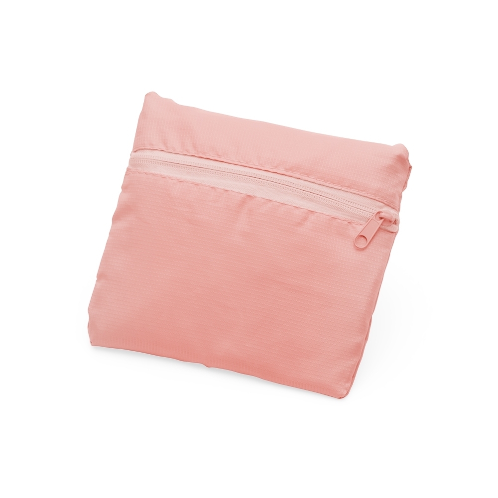 Bolsa de viagem personalizada dobrável confeccionada em poliéster e alça para mãos em nylon. Possui bolso principal na parte superior, bolso frontal também utilizado como um estojo para armazenamento do próprio produto e com área para encaixe em malas com puxador. Para guardar a bolsa dentro do estojo, posicione o bolso frontal para baixo, dobre a parte superior e inferior de modo que fique apenas o formato do bolso, faça o mesmo procedimento com as laterais para obter o formato quadrangular por completo. Com o lado do bolso virado para cima, posicione os dedos na parte interna superior e vire como se fosse deixá-lo do avesso, faça o mesmo procedimento com a parte inferior do bolso.
