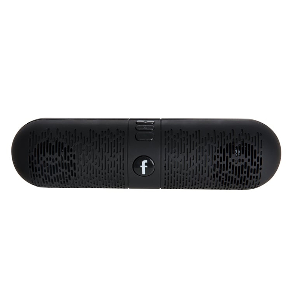 Caixa de som personalizada multimídia bluethooth. Material emborrachado com detalhes plásticos, possui um detalhe circular com um “F” no centro. Modo de utilizar: possui um botão de On/Off no verso. Botão + : Avança faixas, no modo rádio avança as estações e quando segurado o botão aumenta seu volume. Botão M: Altera entre os modos de utilização, bluetooth e rádio. Botão - : Retrocede faixas, no modo rádio volta as estações e quando segurado o botão diminui seu volume. Botão F: inicia ou pausa uma faixa, também serve para atender chamadas enquanto conectado ao celular. Na função rádio este botão sintoniza as estações. Possui microfone na parte traseira acima da saída DC5V, botão “F”, entrada USB, entrada MicroUSB, entrada cartão Micro SD. Obs.: Para trocar os modos pen drive ou cartão de memória basta alternar entre os modos no botão M. Potência de saída: RMS 3W THD=10%; Frequência de resposta: 150Hz-20Khz.; Frequência de alcance de Rádio FM: 87.05-108Mhz; SNR: ≥ 65DB; Falante: 1.5 4Ω; Alcance do Bluetooth: 10 metros; Distorção <1%. Acompanha cabo USB.