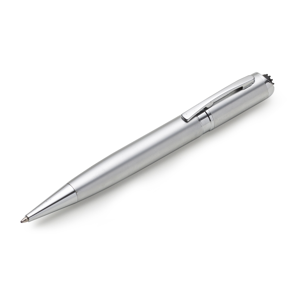 Caneta metal personalizada massageadora, basta pressionar ponta superior no local desejado que ela irá vibrar, para acionar esferográfica segure a ponteira e gire a caneta. Acompanha uma pilha LR1 1.5V.
