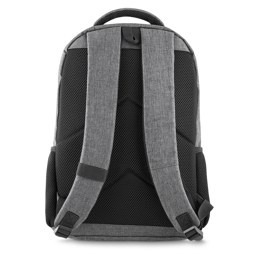 Mochila personalizada para notebook tecido nylon, dois bolsos laterais em malha, bolso frontal, porta notebook e chaves, porta documentos e canetas, saída de fone de ouvido, toda forrada, alça de mão, alça de ombro e costas acolchoado.