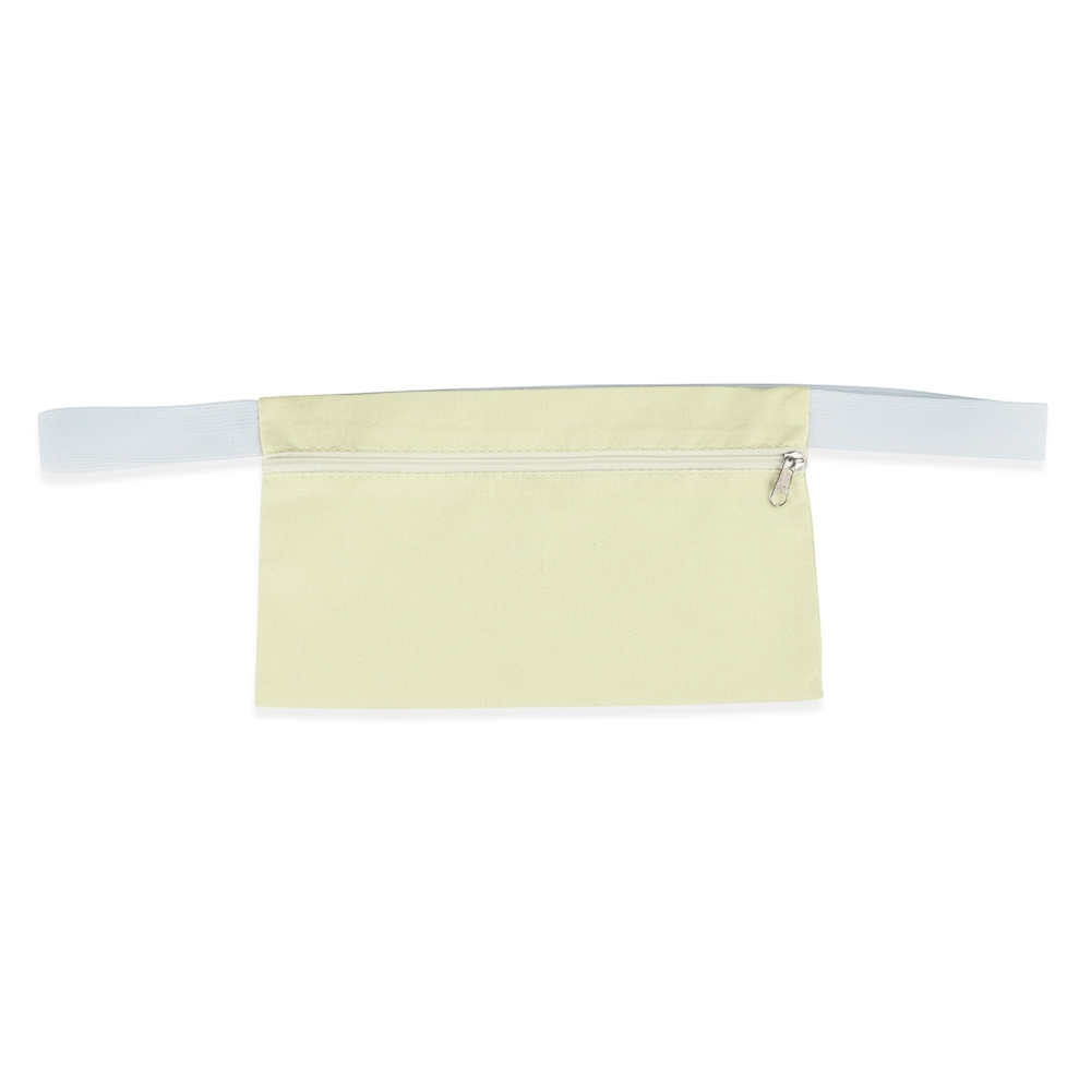 Porta dólar confeccionado em algodão cru com fita elástica.